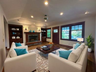 Inside, the home’s upper level features a spacious living area filled with natural light and centered around a cozy gas fireplace. The chef’s kitchen is a dream, equipped with quartz countertops, stainless steel appliances, gas range, oversized butcher block island, and a convenient butler’s pantry—ideal for cooking and entertaining. The primary suite offers a serene retreat with its own fireplace, walk-in closet, and spa-like soaking tub. Two additional bedrooms and a full bath complete the mail level. The front bedroom can easily become a flex space perfect for a home office. The closet doors are on-site and can be reinstalled for use as a bedroom closet.
