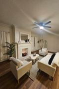 - Freshly painted home with brand new floors, built-in bookcases, and elegant electric fireplace