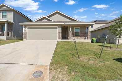 Beautiful 1-story home featuring 3 bedrooms and 2.5 bathrooms with a bright and open floorplan designed for modern living. The spacious living area flows seamlessly into the dining and kitchen spaces, making it ideal for entertaining. The kitchen features a large island, stainless steel appliances, ample cabinetry, and countertop space with modern finishes. The primary suite offers a walk-in closet and a private bathroom with dual vanities and a custom stand-in shower. Enjoy outdoor living with a covered patio and a fenced-in backyard perfect for relaxing or hosting guests. Additional highlights include a 2-car garage and a dedicated laundry room. Quick access to Loop 1604 and a short drive to Lackland AFB.
