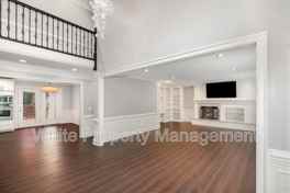 Step inside to a grand two-story foyer flanked by a formal dining room on one side and a formal living room with custom built-ins on the other. The heart of the home is the stunning kitchen, featuring high-end stainless steel appliances, a spacious island, and plenty of room to cook and gather. The main-level primary suite is a true retreat, complete with a custom walk-in closet, oversized soaking tub, and a beautifully tiled walk-in shower. A second bedroom and full bath are tucked away on the opposite end of the home, adjacent to the laundry room—perfect for guests or a home office setup. Pet-friendly! Pets are welcome with prior owner approval.