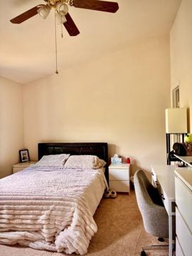 This cozy main bedroom is FURNISHED. It has an ensuite, private bathroom is perfect for solo traveling professionals or nurses. The room features ample closet space for all your items. The home features a fully furnished kitchen, an on premise washer/dryer, and a fenced backyard for added privacy. Enjoy 500 Mbps Wi-Fi, a Ring doorbell, and keyless entry for secure, seamless living.