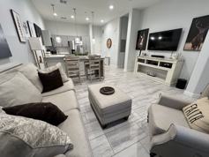 Welcome to this beautifully designed unfurnished 3-bedroom, 2.5-bathroom townhouse located in a gated Providence community. With 10’ ceilings on both floors, this home offers an open and airy layout complemented by stylish, modern finishes. The first floor features a charming covered patio, while the second floor includes private balconies off both the primary and the secondary bedroom.