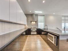 Stainless steel 4 burner gas range, double drawer dishwasher, microwave, refrigerator, washer and dryer (AS-IS) included.