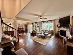 Step into a bright and inviting main level featuring a dedicated office, separate formal dining room, and a cozy living room anchored by a gas fireplace and custom built-in shelving. The gourmet kitchen is a chef’s delight with granite countertops, stainless steel appliances, a spacious island, and large pantry, all designed for entertaining and everyday living. Adjacent is a convenient mudroom with access to the garage, adding practicality to daily routines.