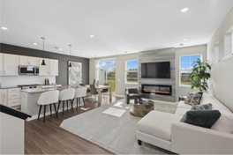 Open-concept layout seamlessly connecting the Great Room, dining area, and kitchen. Higher ceilings on main level.