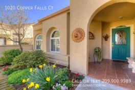 1020 Copper Falls Ct is a 3 bedroom, 2 bathrooms apartment for rent. It is located in Modesto. It has apartment amenities including central heat, outdoor space, assigned parking, lake, garden, in-unit laundry, ceiling fan, waterfront, microwave, furnished, and air conditioning.