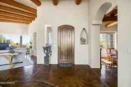 The home is a balance elegance and southwest charm features floor‑to‑ceiling glass, wood, multiple fireplaces, chef's kitchen, two living and dining areas along with two main floor suites with luxurious baths, fireplaces and access to the patio. The upper level suite features a kitchenette, desk work area and private balcony. Backing to natural area open space the outdoor spaces are the ultimate in a relaxing luxury retreat with pool and spa, large covered patio areas, built in bbq and fireplace with tons of privacy.
