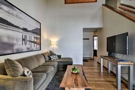 This unit has space for 6 people 2 main floor rooms (queen beds) and 2nd floor room (king bed) and additional twin bunk bed. The dining table has 6 chairs with 4 additional counter stools. All appliances are full size.