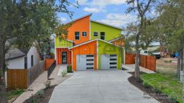 Welcome to 124 South Mockingbird Circle, Cedar Creek, TX 78612, where modern design meets serene country living. This vibrant two-story home greets you with a striking exterior, featuring bold orange and green hues that set the tone for its contemporary style. The property offers a spacious driveway leading to a double garage, ensuring ample parking for residents and guests. Nestled in a tranquil neighborhood, the home provides a perfect blend of privacy and community, with expansive views of the surrounding countryside.