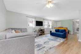 - Renovated full bathroom (2023) and convenient half bath attached to the primary bedroom