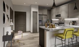 Elevated living meets creative energy in this vibrant apartment community designed for modern lifestyles. Spacious studio, one-, and two-bedroom floor plans feature sleek interiors with quartz countertops, tile backsplashes, stainless steel appliances, and wood-style flooring. Expansive windows bring in natural light, while smart home technology adds convenience to daily routines. Residents enjoy a curated mix of amenities, including a resort-style pool, state-of-the-art fitness center, yoga and spin studios, and co-working spaces perfect for remote work. Outdoor lounges, grilling stations, and a rooftop deck create inviting spaces for relaxation and socializing. The pet-friendly community also offers a dog park and pet spa. Bike storage, package lockers, and on-site management add to the ease of everyday living. Whether you're winding down in a private courtyard or connecting with neighbors at community events, this thoughtfully crafted environment delivers a fresh, inspired take on apartment living tailored to those who thrive on creativity and connection.