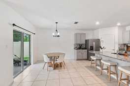 Modern and inviting, this well-built 4-bedroom, 2-bath home offers a great floor plan with a spacious and flexible layout filled with natural light. The primary suite features a walk-in closet, double vanities, and a tiled shower. Designed for both comfort and functionality, the open-concept living area flows seamlessly into a beautifully styled kitchen with gray cabinetry, recessed lighting, granite countertops, and stainless steel appliances. Tesla Supercharger available! Enjoy outdoor living with a spacious fenced patio—perfect for relaxing or entertaining. Ideally located just minutes from the sought-after Lake Nona area. Schedule your private tour today!
