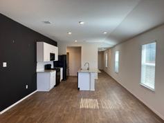 Pet FriendlyReady for MOVE-IN! This charming one-story home in the popular Stoney Creek subdivision offers a modern, open layout with wood-look vinyl flooring throughout the living and kitchen areas. The kitchen features crisp white cabinets, a center island, and black appliances, including a refrigerator. The spacious living room is filled with recessed lighting, creating a bright and welcoming space. The master suite boasts high ceilings, recessed lighting, a single vanity, a large walk-in shower, and an oversized walk-in closet. Step outside to a covered patio with privacy fencing—perfect for relaxing or entertaining. Conveniently located near Lackland Air Force Base, major highways, shopping, and dining.