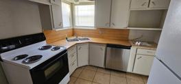 Two bedroom one bath home with central heat and air, refrigerator, dishwasher, and oven.