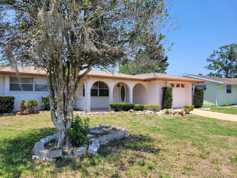 Charming rental opportunity in Magnolia Valley in New Port Richey! This delightful residence features two cozy bedrooms and two well-appointed bathrooms. The entire home boasts stylish tile flooring, creating a seamless aesthetic. Additionally, you'll find a delightful enclosed porch area that offers year-round comfort with heating and cooling. Conveniently, the attached one-car garage houses the washer and dryer for easy access. Take a moment to relax on the inviting front porch while relishing the serene view of the picturesque pond.