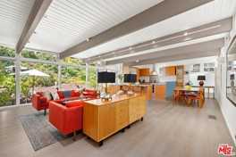 Beautifully updated post and beam modern home nestled in one of Los Angeles' most sought-after neighborhoods. Originally built in the 1950s, this five-bedroom, three-bathroom residence showcases timeless mid-century architecture enhanced by thoughtful modern updates throughout. The main level features open-concept living spaces bathed in natural light, with exposed wood beams and floor-to-ceiling windows that create a seamless indoor-outdoor connection. The gourmet kitchen flows effortlessly into the dining and living areas, making it ideal for both everyday living and entertaining. The entire second level is dedicated to the primary suite that includes a large bedroom, spa-inspired en-suite bathroom, and an adjoining room perfect for a home office, nursery, or bedroom. This home is offered fully furnished with beautifully curated, high-end furnishings and tasteful artwork throughout. Outside, the lushly landscaped backyard offers a peaceful escape with multiple areas for outdoor dining, lounging, and entertaining. Whether hosting guests or enjoying a quiet evening under the stars, the setting is private, inviting, and serene. Additional highlights include a two-car carport, excellent street parking, and close proximity to some of Los Angeles' best hiking trails. Located within the coveted Wonderland Avenue School district and just minutes from premier dining, shopping, and entertainment, this exceptional home is ideal for both families and entertainers and offers the perfect balance of tranquil, stylish living and vibrant city access.