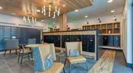 Clubroom with TVs, kitchen, coffee bar, and billiards