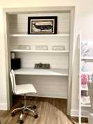 The bedroom has natural light and a large walk-in closet, with built-ins.