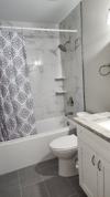 Modern kitchen with stainless steel appliances. Washer & dryer included.