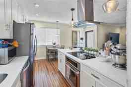 This completely remodeled, no-HOA Three-bedroom home near Whispering Pines features an open layout, white quartz kitchen with island, bamboo flooring, one bathroom,  Large fenced yard with newly installed deck, shed, boat slip, and a mango tree. No HOA. Roof 2022 2024 impact windows,2023 HVAC, Plumbing Throughout house done in 2015