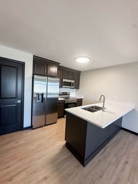 As you make your way into the unit itself, you will be greeted with great natural light coming through the windows. Each unit has an open concept with a kitchen that includes all stainless steel appliances as well as a large peninsula that is great to dine at and prepare meals.