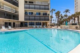 LIVE ON THE BEACH in this large 1581 sq. ft. 2 bedroom, 2 bath mostly furnished condo.  Impact sliding glass doors lead to two lanais that span across both bedrooms and living room making this condo light and airy. Two walk-in showers, all new stainless appliances and hard surface countertops. There is an abundance of storage including 2 walk-in closets. A short walk to waterfront dining and the Venetian Village Shops. Beautiful heated pool with spectacular Gulf views, Newly renovated social room with kitchen facilities, updated fitness room and indoor bike storage. This is a secure building with on-site management, one assigned covered parking space, plus guest parking and additional storage area ideal for your golf clubs and beach chairs. This beautiful condo has all you need to relax in paradise. One person must be 55+ to rent. Annual lease only.
