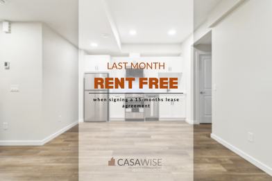 Enjoy your LAST MONTH RENT FREE when signing a 15-months lease agreement!