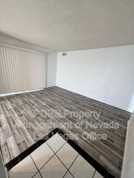 This remodeled upstairs condominium features 2 bedrooms and 1 bathroom, showcasing a generously sized living room with new flooring and a sliding glass door to a private enclosed patio. The kitchen is appointed with beautiful countertops, backsplash, tile flooring, and upgraded appliances, adjacent to a dining room. The primary bedroom boasts new flooring and a spacious entry closet, while bedroom number two features brand new flooring and a decent-sized closet. The bathroom provides ample vanity space, a linen closet, and a tub/shower combination.