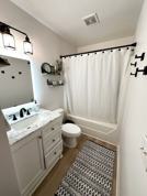 Bedroom in beautifully renovated Townhome with laminate floors everywhere except bedrooms and 2nd floor hallway. Only 5 minutes from UNC. Very quiet cul-de-sac convenient to shopping, food, etc. Serene, shaded, fenced rear patio/deck with firepit. Remodeled bathroom shared with 1 other person features a backlit touch enabled mirror. Bedroom, bath, and shared laundry on 2nd floor. Modern shared Kitchen and Living area. Smart Lock on front door.