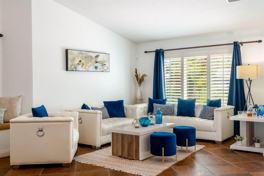 Don't miss this fantastic opportunity to lease long-term or (31 days +) residence in Lake La Quinta! Available now for yearly lease $4,500 unfurnished, $5,500 furnished, or Seasonal $8,300. Privately located on a cul-de-sac, this charming residence offers 3 bedrooms, 2 bathrooms, and a thoughtfully designed layout perfect for extended stays. Spacious master suite with a king-size bed, walk-in closet, and dual vanities. Guest Bedroom 2: queen-size bed, and Guest Bedroom 3: queen-size bed plus a bunk bed - ideal for families or guests. Open-concept kitchen with quartz countertops, ample cabinetry, and stainless steel appliances. Washer and dryer included for your convenience. Step outside to enjoy breathtaking mountain views that frame the expansive backyard, featuring a sparkling pool and spa, a covered patio ideal for entertaining, and impeccably landscaped grounds. This premier gated community offers a recreational lake, stunning views, a manned gate, and security patrol. The Chateau restaurant is within walking distance and offers dining with patio seating overlooking the lake. $400 cap on utilities paid by the landlord for seasonal; any amount over will be the tenant's responsibility. $300 non-refundable cleaning fee. The security deposit varies depending on lease terms. Call or text Sylvia (760) 799-5953 for a showing.