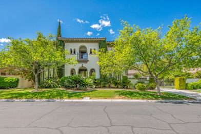 This striking private gated estate, designed and built by the award-winning Christopher Homes, offers a wealth of conveniences. Situated in the premier guard-gated enclave of The Vineyards, this two-story home is located on one of the largest lots in the community, providing an ultra-private ambiance. The main level features high ceilings, decorative molding, a stone fireplace, and combination of luxury tile and hardwood flooring. The striking kitchen and dining area feature eye-catching granite countertops, an oversized island with storage, and a walk-in pantry. An upper-level primary suite features a coffered ceiling, a private balcony with partial strip views, and an elegant bathroom with a soaking tub, walk-in shower, and double sinks. The lush exterior features a voluminous pool and spa, a covered pergola, and an outdoor kitchen. The North Summerlin property showcases architectural detailing throughout. This property is fully furnished.