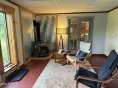 Available 9/3/25 - 5/31/26. Welcome to this classic 1950s barn with a separate studio space of ~900 square feet with large, west-facing windows. The ''industrial rural chic'' retreat is fully furnished and well-laid out with a queen bed, large closets, a cozy sitting space with soapstone propane stove and a well-equipped kitchen with dining table. There is also an office area, high-speed WIFI, and reliable cell phone service (AT&T). Mini split provides heat and A/C. Enjoy your private, peaceful view of pasture, pond, and the Palmer Range, the Southern end of the Adirondack State Park. There is a large, flat lawn with outdoor seating and a firepit, and a private driveway. Tenant responsible for fuel oil, trash; landlord covers electricity and wifi. Come take a look!