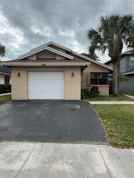 THIS HOME DELIVERS AND IS READY FOR YOU! FALL IN LOVE! Open and bright, split bedroom plan with privacy for all. Front two bedrooms have brand new laminate flooring. Spacious master bedroom with large closet. Kitchen has granite countertops, stainless steel appliances, plus washer and dryer. French doors welcome you to a big back yard for Florida living! Large patio for table and chairs! The yard is fenced, house pets are welcome. A-Rated schools!