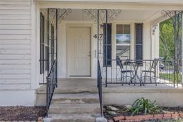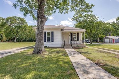Charming, updated cottage with great curb appeal, nestled under a mature shade tree on a spacious lot.  Features a covered front porch, fresh landscaping, and a classic exterior with black shutters and light siding.  Bright kitchen with stainless steel appliances, granite countertops, and crisp white cabinetry accented by modern lighting.  The open dining area includes a large window for natural light and additional built in cabinetry for storage and coffee bar.  Rich hardwood floors flow throughout the space, creating warmth and continuity between rooms.  The spacious living area boasts tall windows with wood blinds, offering both privacy and charm.  The primary bathroom offers double vanity with granite countertop and carved wood cabinetry for a touch of luxury.  Dual framed mirrors and modern fixtures complete the upscale look, while neutral light adds warmth to the space.  Neutral wall colors throughout provide a versatile backdrop ready for your personal style.  Long driveway with covered carport and extra storage and small fenced in area in back.  Washer, dryer, and refrigerator included but will not be repaired by owner.  Short walk to Austin College!