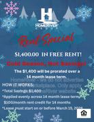 *The Estimated Total Monthly Leasing Price reflects the Base Rent plus our Resident Benefits Package, which includes required Renters Insurance, Move-In Concierge, $1M Identity Protection, Resident Rewards, Filter Delivery (where applicable), and Credit Building. Estimated Total Monthly Leasing Price does not include utilities or optional/conditional fees, such as: pet, utility service. To learn more about additional leasing fees and requirements, please contact HomeRiver Group at 833-779-0266.