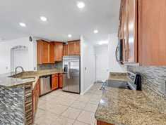 Fully equipped kitchen with microwave, range hood, refrigerator, and ample cabinet space - Washer and dryer included - Central air conditioning and heating throughout