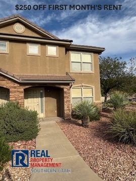 This Community offers a great pool/Jacuzzi and clubhouse with fitness center. Basketball court and playground equipment. Walking distance to Desert Hills High and Middle schools. 3 bedroom, 2.5 baths with laundry room upstairs by bedrooms. Spacious living with living room & family room on the main. Visit our website at rpmsouthernutah. com to apply or give us a call at 435-673-4242 to see this property.