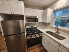 - The fully renovated kitchen showcases quartz countertops, gleaming stainless steel appliances such as a gas stove, refrigerator, microwave, and dishwasher, plus a sleek disposal and a stacked washer/dryer combo for ultimate convenience.