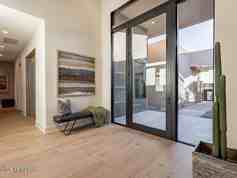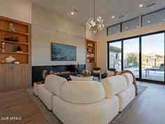 Through the courtyard entry you will be greeted with a towering glass front door that allows your eyes drift through the open-concept layout toward a vista of he shimmering water and verdant expanse of the 13th fairway of the Renegade golf course, crowned by the majestic Sonoran Mountains in the distance. The Chef's kitchen gracefully opens onto the stunning living and dining areas featuring high ceilings, a built-in fireplace, shelving and glass walls that beckon you into paradise. entertainment-ready backyard—a sparkling swimming pool, built-in BBQ, fire pit, and expansive covered patio all admire uninterrupted views of greens, water, and desert peaks. Master suite with fireplace, access to patio and spa like bath. Two additional guest en suites along with private separate casita. Desert Mountain amenities are for members and members guest only. 30 day minimum rental is required.