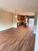 Bright and airy 2BR, 2.5BA townhouse with open layout, new hardwood floors on main level, and updated kitchen featuring granite counters, stainless steel appliances, island, pantry, and patio access.