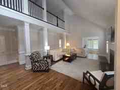 Step into this stunning furnished carriage home within the prestigious Brier Creek Country Club, boasting exquisite features and unparalleled elegance throughout. Every detail of this upgraded and meticulously maintained residence combines luxury, comfort, convenience and country club living. Vaulted ceilings create an airy openness, while skylights flood the space with beautiful natural light. A cozy gas fireplace warms the space with a true sense of home. A large formal dining area with a bay window sits opposite the foyer and living room. Continuing next to the main living area is a charming sunroom with a cathedral ceiling and arched window, providing a serene space to unwind or entertain guests. A true highlight of this home is the amazing screened porch, featuring golf views, vaulted ceilings, skylights, and ceiling fan, a true tranquil outdoor retreat. The main level primary suite and upgraded primary bath, offer ample storage with a walk in closet and a sitting area making it a comfortable private space. The renovated kitchen is a chef's dream, showcasing gorgeous quartz countertops, gas cooktop, wall oven, beautiful cabinets, hardwood flooring, and a breakfast area. Upstairs, you'll find a spacious loft area illuminated by oversized skylights, and two secondary bedrooms offering ample living and closet space. Additional storage is not a problem with attic storage and a 2 car garage. This home truly checks all the boxes, and within the Brier Creek Country Club! Don't miss the opportunity to experience the epitome of elegant living in this remarkable carriage home. Monthly rental rate includes all exterior maintenance & landscaping! NO PETS. $75 Application fee per person. $150 admin fee if approved per household. Landlord believes home contains approx 2845 sqft but tenant shall verify & not rely upon foregoing representation. Rented as is unless otherwise agreed. Required Resident Benefit Package $49.95/month includes liability insurance, credit building, identity theft protection, HVAC air filter delivery, on-demand pest control & much more!