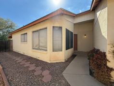 Charming 3-bedroom, 2-bathroom home in a quiet Peoria neighborhood, backing onto Peoria Oasis Golf Course. Enjoy unobstructed views with no rear neighbors. Features a bright open floor plan, vaulted ceilings, and tile flooring. The kitchen boasts new stainless steel appliances and a breakfast bar. Spacious primary suite with walk-in closet and en-suite bathroom. Includes washer and dryer (as-is). Low-maintenance backyard with covered patio. Conveniently located near shopping, parks, schools, and Loop 101. A perfect blend of comfort and scenic living!
