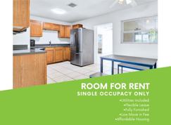 Welcome to your fully furnished private room in Orlando with all utilities and amenities included! This private room is furnished with a Queen bed, dresser and 40 in smart TV.