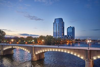 Experience the pinnacle of urban living in this exquisite penthouse condo located in the vibrant core of downtown Grand Rapids. Perfectly positioned just steps away from world-class dining, entertainment, and cultural landmarks, this home offers unparalleled access to everything the city has to offer. Enjoy breathtaking skyline views from your private terrace as you soak in the energy of the city below. Food enthusiasts will love being mere minutes from a diverse array of acclaimed restaurants, trendy cafes, and lively bars, making every night an opportunity to explore new flavors and experiences. Sports fans and concertgoers rejoice - the brand-new state-of-the-art soccer stadium and amphitheater are right at your doorstep, bringing thrilling games and live performances right to your neighborhood. Whether it's game day excitement or a night under the stars with your favorite artists, you're always in the front row. At 2,600 square feet, this 3-bedroom, 2-bathroom condo offers a brilliant floor plan for entertaining. The great room boasts designer built-ins, textured wall panels, and floor-to-ceiling windows. The custom kitchen features a 14 foot island with quartz countertops, tigerwood cabinetry, and an expansive walk-in pantry. The primary suite offers panoramic views and a newly renovated en-suite with walk-in shower. Residents of River House Condos enjoy a sleek entry lobby, lounge, indoor pool, fitness center, and 24/7 concierge. Available furnished for $6,500 per month.