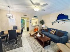 Furnished 1-Bed, 1-Bath Intracoastal Condo– Steps from the Beach! Move right in. Updated second-floor unit, furnished with a breezy nautical flair. Located directly across from beach access, this unit features an updated bathroom and kitchen - Gas stove and the entire unit is fully tiled—no carpet anywhere. Take advantage of the community’s private pool, hot tub, covered seating area, & BBQ space. Includes one assigned parking spot. Water is included, on-site coin laundry facility. Condo Assoc. has not reached the 80/20 rule – still open to all ages (no occupants under 18) Maximum 2 occupants & 1 vehicle (no work trucks, motorcycles, or marked vehicles) - Quick approval. Renters insurance required before occupancy. No pets. All info. is deemed reliable but should be verified by tenant.