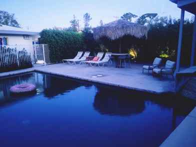 This beautiful master 1-bedroom, 1-bathroom studio offers a cozy 400 square feet of living space, ideal for singles or couples seeking a peaceful retreat. Built in 2007, the property features modern amenities, including a fully equipped kitchenette with a refrigerator, toaster oven, microwave, and convenient indoor washer and dryer. The tiled flooring complements the central heating and cooling system, ensuring year-round comfort.
