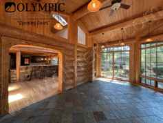 This is a must see - Amazing log home in NE Olympia about 1/2 mile to Tolmie State Park. 3 bedroom plus bonus room (about 250 sq ft) off the 2 car garage. Private setting on over 3/4 acre lot. Large living room with vaulted ceilings with wood beams, floor to ceiling windows overlooking the large deck, yard and wooded back area and ceiling fan. Partially covered deck with ceiling fan. Beautiful fully remodeled kitchen with granite countertops, breakfast bar, farm sink, stainless steel appliances including refrigerator, gas range, microwave and dishwasher. Primary bedroom and bath on mail floor. Heat and air conditioning with mini-splits and heated wood flooring. Skylights, ceiling fans. 2396 sq ft (plus the bonus room). Built in 1991. Hot tub and extra refrigerator are included "as is" and will not be repaired/replaced. Wood bed frames can remain in home or be moved out. Play structure. Washer/Dryer included. On Septic and Well. No smoking. Pets negotiable with additional deposit and pet rent. Thurston County.