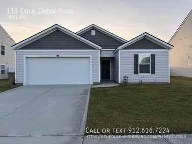 Enjoy the comfort and style of 118 Cold Creek Pass, a charming 3-bedroom, 2-bathroom home nestled in the heart of Port Wentworth, GA. Offering 1,342 sq. ft. of thoughtfully designed living space, this home blends modern touches with everyday convenience.