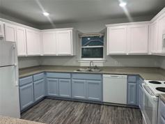 This spacious 1,575 sq. ft. duplex in Commerce, TX offers modern style, comfort, and convenience. Professionally painted, the home features luxury vinyl flooring throughout, creating a clean and cohesive look. The open-concept living area and kitchen provide a welcoming space for relaxing or entertaining, with the kitchen showcasing white appliances, stylish two-tone cabinetry, and a beautiful granite countertop for a sleek, modern finish.