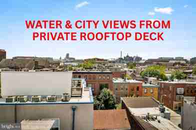 **50% OFF 1ST MONTH'S RENT FOR MOVE IN ON OR BEFORE 11/15!** A rarely available corner 2 bed, 2.5 bath penthouse condo in the heart of Fells Point with secure covered parking and a rooftop deck with sweeping views of the harbor and city skyline. Elevator in building! Open main level with hardwood floors, spacious living area, powder room and a Juliet balcony. 2 large bedrooms, each with their own bathroom, laundry, and stairwell access to rooftop deck. Primary comes with ample natural light, large ensuite bathroom and walk-in closet. The private rooftop deck will wow you with water and city skyline views. A perfect space to unwind after a busy day, hang out with friends and watch the fireworks on NYE and 4th of July. Gated parking lot with an assigned parking space for 1 car (#10) and community offers easy communication to use other resident spots when available for your guests. Live in an incredible building with a gated community courtyard complete with a grilling area, seating, Koi pond, elevator and secured parking. Located minutes from the iconic Thames Street in Fells Point, Harbor East, Canton, and Johns Hopkins. Easy access to I-95 and I-895. Steps to the waterfront, the newly renovated Broadway Market, Starbucks, Whole Foods, shops and some of the city's finest dining. Pet friendly. Immediately available! Please note: Rooftop deck is under construction for approx. the next 30-60 days.